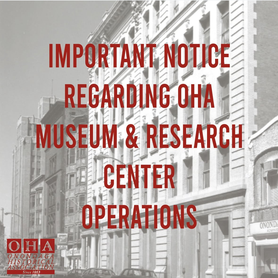 The Latest OHA and Manlius Cinema Present “Strides Toward Democracy” Film SeriesJan 21, 2026Closure to Research Center and ServicesDec 04, 2025OHA Closed November 28, 2025Nov 27, 2025Second Floor Exhibits Closed Beginning August 31, 2025.Aug 20, 2025Second floor & Research Center closed 8/15/25Aug 14, 2025OHA Downtown Museum Closed August 7Aug 07, 2025Research Center Closed Saturday, July 26Jul 23, 2025Our Glorious Workplaces: Bicentennial GalaJul 01, 2025Temporary ADA Accessible Entrance UnavailabilityJun 17, 2025 1 2 3 … 13 Next »